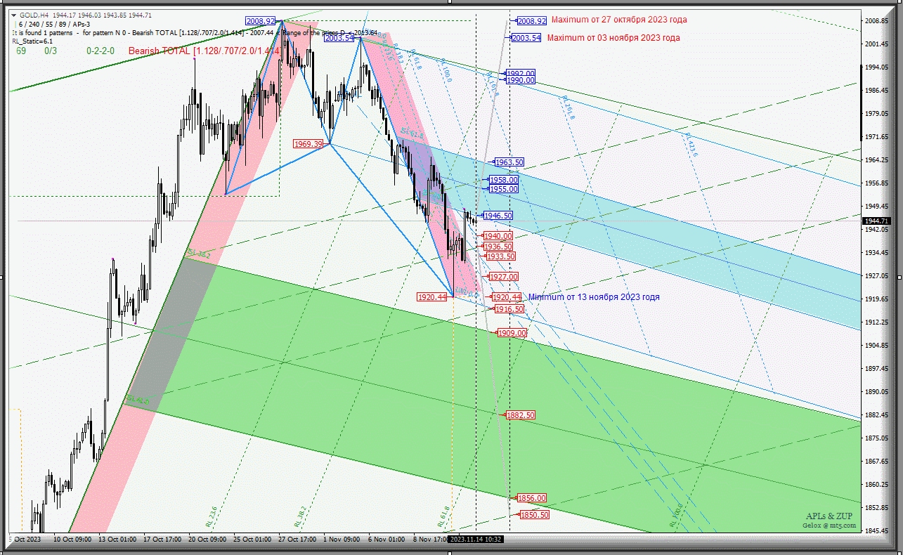 Основные технические уровни для торговли Spot Gold - h4 - обзор вариантов движения c 14 ноября 2023 года.